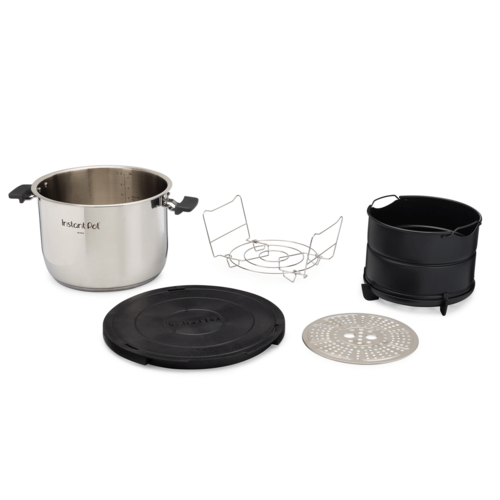 11 funcții de gătit: gătire sub presiune, prăjire cu aer, gătire lentă, abur, sote, sous vide, friptură, copt, grill, deshidratare sau menținere la cald – toate într-un singur aparat ușor de folosit. Vasul interior din oțel inoxidabil (18/8) este compatibil cu plitele electrice, ceramice, pe gaz și inducție, precum și cu cuptoarele până la 230°C. Baza plată cu trei straturi asigură rezultate excelente pentru prăjit și sote, iar mâinerele din silicon facilitează manipularea. În plus, totul se curăță rapid în mașina de spălat vase.