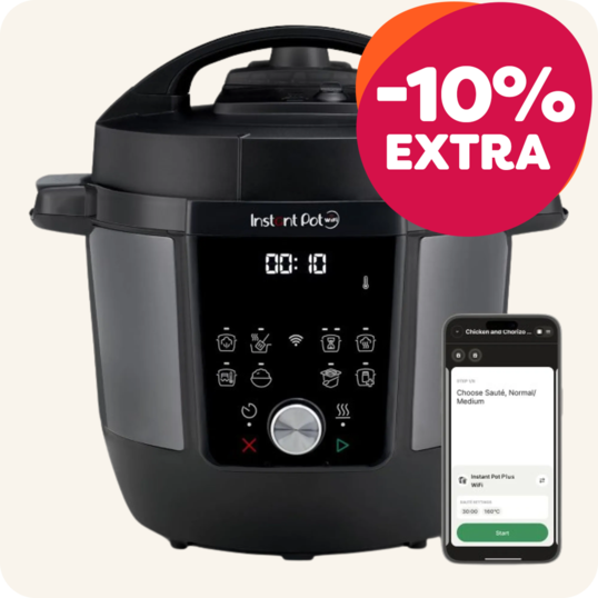 Instant Pot Plus, noua generație de multicookere inteligente, transformă gătitul într-o activitate incredibil de ușoară. Indiferent dacă hrănești bebelușul, încerci să sincronizezi somnul micuțului sau ai nevoie pur și simplu de o pauză binemeritată, acest ajutor de nădejde preia munca în locul tău. Cu funcția de control prin aplicație, poți porni cina direct de pe canapea – astfel încât să te bucuri de timp pentru tine, fără griji în bucătărie.