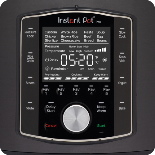 Instant Pot Pro Black 7.6L este alegerea ideală pentru cei care vor un multicooker rapid, intuitiv și multifuncțional. Cu 10 funcții într-un singur aparat, înlocuiește mai multe gadgeturi de bucătărie: oală sub presiune, slow cooker, sous vide, tigaie, sterilizator, aparat de iaurt, funcție menținere caldă, aparat de prăjit prăjituri și aburitor. Orice rețetă poate fi preparată simplu și eficient, fără a aglomera bucătăria cu aparate suplimentare.